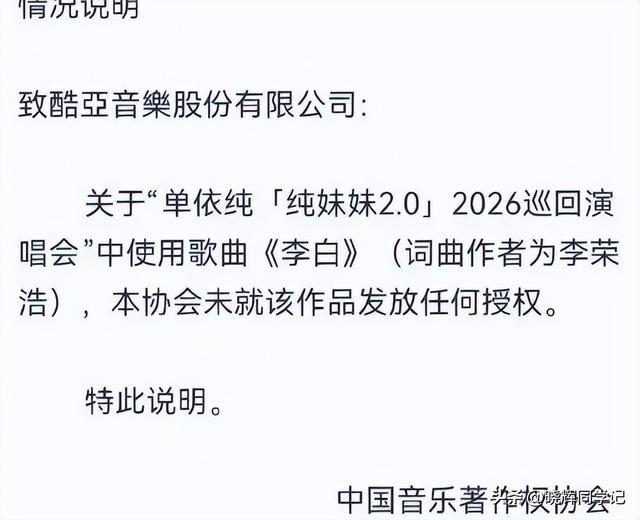 白纸黑字显示,协会并未授权单依纯演唱《李白》。