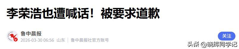 鲁中晨报(李荣浩也遭喊话!被要求道歉 2026.03.30)