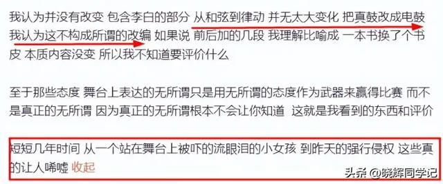 看着当年那个在舞台上紧张到流泪的女孩,变成如今“强行侵权”的模样。
